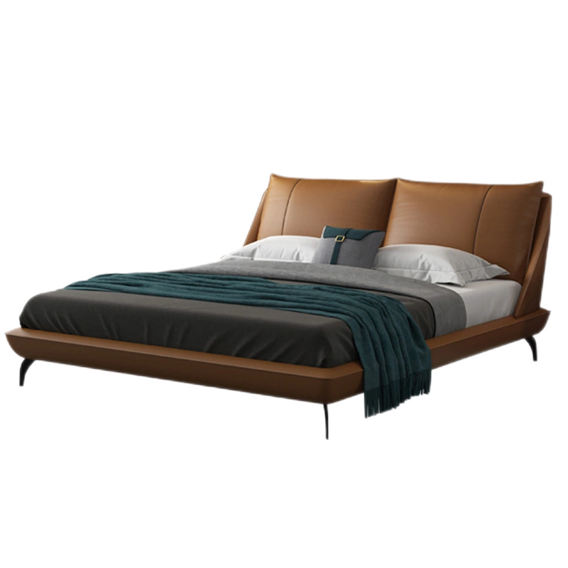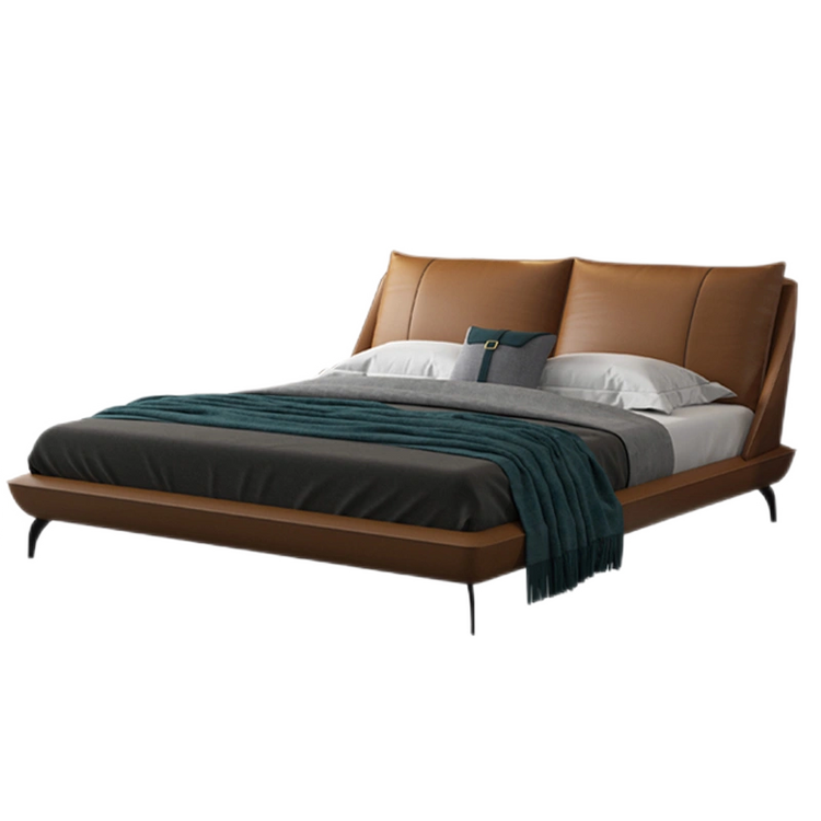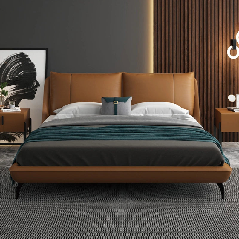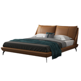 The Ardelle Bed brings a touch of refined European elegance to contemporary bedroom interiors. Wrapped in smooth caramel vegan leather, its gently curved headboard and minimalist silhouette balance luxury with modern simplicity. The tailored stitching and slim black metal legs highlight its craftsmanship while offering lasting durability and sleek visual contrast.