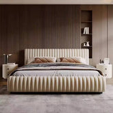 The Lorenzo Channel Bed brings modern refinement and comfort together in perfect harmony. Featuring elegant vertical channel tufting across a fully upholstered frame, this bed adds depth, texture, and sophistication to any bedroom.