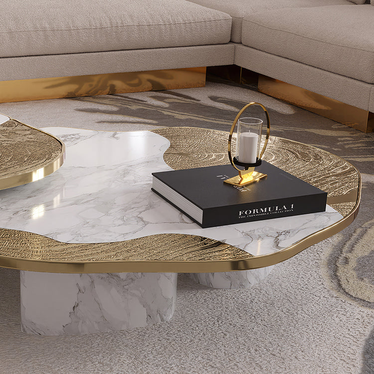 Each table features a sculptural layered design, creating a statement centerpiece that can be styled together for dramatic impact or arranged separately for versatile use. Crafted with premium marble tops and a durable stainless steel base, this set embodies sophistication, strength, and timeless luxury. Perfect for living rooms, designer interiors, and upscale residences.